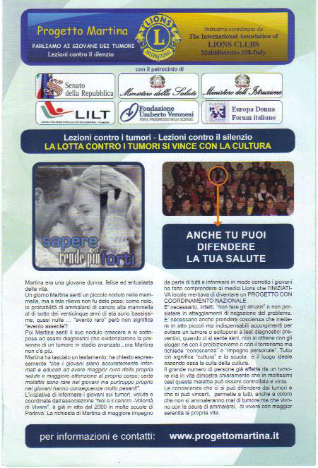 Il Progetto è una attività che ormai da diversi anni il Lions Club Ostuni Host porta avanti nelle scuole superiori della città per parlare di prevenzione dei tumori.